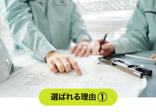 弊社には、1級建築施工管理技士をはじめ、2級建築士など有資格者のスタッフが在籍していますので、施工技術、管理には絶対の自信があります。